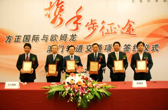 方正集團總裁張兆東在簽約儀式上表示:“我相信在歐姆龍和方正國際雙方的共同努力下,澳門(mén)軌道交通項目將會(huì )順利、高效地完成,中國的智能交通領(lǐng)域也將得到進(jìn)一步的推動(dòng)和發(fā)展。方正集團將一如既往地支持方正國際與歐姆龍的合作?!?br>  軟件及行業(yè)解決方案是方正信產(chǎn)集團四大業(yè)務(wù)板塊之一,作為方正信產(chǎn)集團的重要一份子,方正國際在軌道交通、金融和醫療信息化、地理信息系統等領(lǐng)域進(jìn)行了深入的技術(shù)研發(fā),形成了競爭優(yōu)勢,并與眾多國際公司展開(kāi)合作。方正國際總裁管祥紅表示:“世界各國經(jīng)濟的發(fā)展已經(jīng)證明軌道交通是解決城市交通擁堵的最有效手段。作為今后的重要發(fā)展方向之一,方正國際將致力于軌道交通的長(cháng)期投入和建設,并為城市軌道交通建設做出自己的貢獻”。方正國際在用實(shí)際行動(dòng)改變人們的出行方式,讓城市交通變得更安全、更高效、更環(huán)保,同時(shí)也助力方正信產(chǎn)集團發(fā)展成為一家全球信息技術(shù)、產(chǎn)品及服務(wù)的綜合供應商。